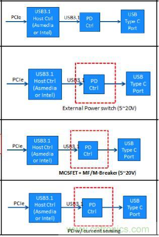 圖2:四種USB Type-C過流保護方案設計架構