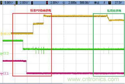 圖6.基于Cypress CCG2方案的PD協議的充電器供電協商波形