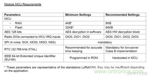 LoRaWAN模組關鍵的器件是MCU和SX127x。MCU多以超低功耗為主要選擇,在Semtech公司的應用筆記中提到了MCU的規格和要求 -《AN1200.28 LoRaWAN MCU Spececification and Requirements》:
