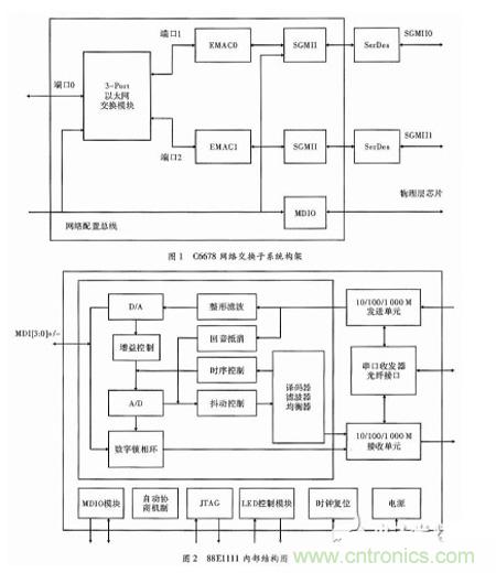 EMAC的作用是將交換子系統的內部信號轉換為GMII信號傳遞給SGMII模塊;MDIO控制物理層芯片執行對多數據流的控制輸入輸出。