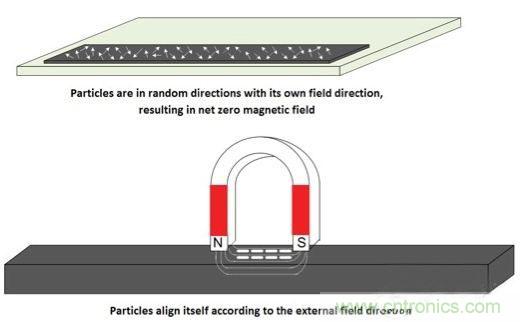 圖1:在外部磁場(chǎng)的影響下磁化材料按特定方向排列
