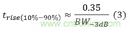 測量系統就像一個低通濾波器,它減弱高頻部分,如圖2(頂部)所示。從圖2觀察到,波形的上升時間顯著不同。這可歸因于根據以下等式的系統帶寬和上升時間之間的關系[1]: