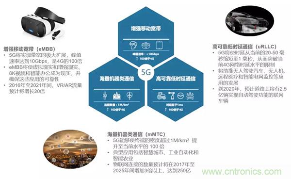 未來5G將應用在增強移動寬帶(eMBB)、高可靠低時延通信(uRLLC)、海量機器類通信(mMTC)三大場景。而這需求的是非常寬的帶寬,非常高傳輸的速率,非??煽康牡脱訒r的連接,另外,還需要海量機器類型連接的網絡。