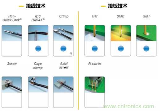 連接器的連接方式種類很多,基本上可以分為接線(與線纜連接)和接板(與PCB 連接)兩個大類。而 Crimp 與 Press-in 就是這兩大類里面最常用的連接方式。有意思的是,這兩種連接方式的中文都可以用“壓接”這個詞來表述。