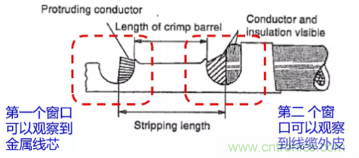 插入時要留意長短深度。線纜插入過短容易導致端接達不到規定的拉拔力,因為線纜與端子之間的金屬間接觸減少了;而線纜插入過深則會縮短連接器的使用壽命。以車針壓接為例,當第一個窗口可以觀察到金屬線芯,第二個窗口可以觀察到線纜外皮時,表示線芯的位置是剛好的。