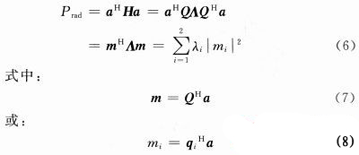 式中:|·|表示復數(shù)的模,上角標H表示厄米特轉(zhuǎn)置。那么,輻射功率就可以表示為: