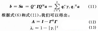 與輻射功率相對的是反射功率。根據(jù)(5)式及厄米特矩陣的性質(zhì),如果Q可以將H化為對角矩陣,則S也可以化為對角矩陣。有: