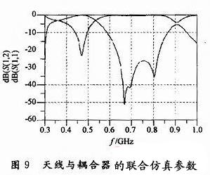 本文從s參數(shù)的角度分析了一個雙天線系統(tǒng)的去耦合方法,并通過一個天線設計實例,使用HFSS和ADS進行去耦合前和去耦合后的仿真。結(jié)果顯示加入去耦合網(wǎng)絡和匹配網(wǎng)絡后兩個天線間的耦合可以降低至-35 dB以下,反射系數(shù)也可達到-15 dB以下,這滿足了工作于710 MHz的移動設備的要求。