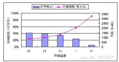 從圖3可看出,隨著環境溫度的降低,換熱單元的耗能隨至減少。當環境溫度為20度時,換熱單元耗能只是滿負荷功耗的25%,日可節約電能約1.5度。