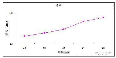音頻噪聲污染主要控制方法是選用低噪音換熱單元,同時機柜采用消音措施。研究表明,換熱單元調速可有效的降低機柜噪音。圖5是某型戶外產品噪音水平與環境溫度關系曲線,從曲線可看出,采用調速后,隨著環境溫度減小,戶外柜噪音明顯降低。由于夜晚時環境溫度變低,因此采用該項技術的設備晚間有更低的噪音水平,非常符合實際應用環境的需要。