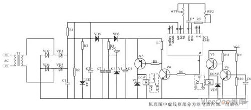 該電路核心部分由IC4541構成,延時設定由RP2、C*設定,A-B端根據(jù)需求接相應高、低電平(設定端)內部2繞組閉鎖繼電器采用DC12V(因繼電器工作電壓與IC4060組成延時電器要低,則為保證其驅動則分別由V6、V7、V1、V3構成)。其中C2為二次儲能器件,可根據(jù)延時的長短予以調整,C4為完成S置位線圈工作。