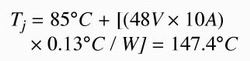 計算出的結溫非常接近功率FET(NTB52N10T4)的額定溫度上限Tj(150℃),如果外殼溫度發生一個很小的變化,很容易便超過了它。