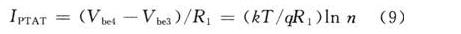 由式(9)可知,流經R1的電流與電源無關,只與絕對溫度成正比,即得到PTAT電流。