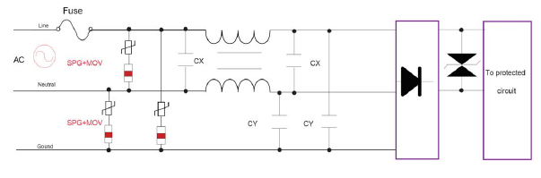 由于強效應玻璃放電管存在續流的問題而不能直接用在有源電路上進行保護,因而在有源產品上的防護必須要利用限壓型的保護器件(壓每電阻或防雷型的HYPERFIX等限壓型器件)配合使用。