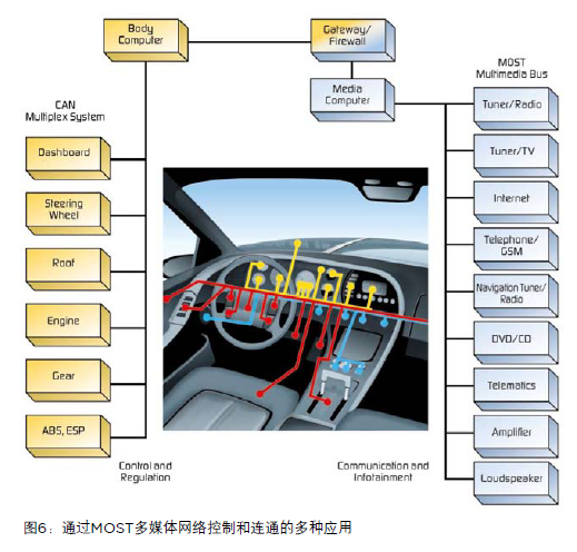 MOST (媒體導(dǎo)向系統(tǒng)傳輸)可為塑料光纖同步和異步數(shù)據(jù)傳輸?shù)囊曨l和音頻功能和支持速度高達(dá)40+Mbps。MOST收發(fā)器適用于需要進(jìn)行實(shí)時處理的高寬帶設(shè)備,如DVD播放器、耳機(jī)、GPS設(shè)備和聲音控制。