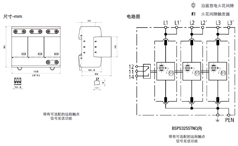 •    由于采用了耐用的氧化鋅變阻器和火花間隙技術,具有很高的浪涌 放電容量