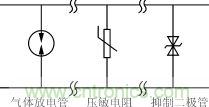 一般不單獨使用放電管來保護電子設備,而在放電管后面再增加一些保護元件,以抑制這種時延脈沖。
