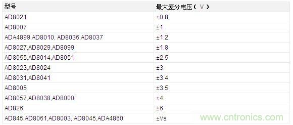 表1 所選高速運算放大器的最大差分電壓額定值