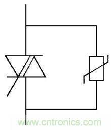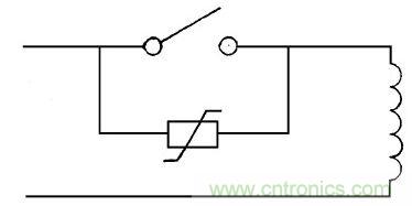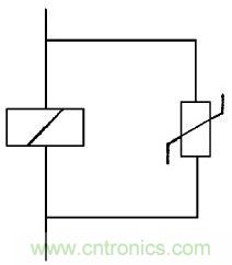 圖8中壓敏電阻并在開關觸點回路或被控制帶有感抗、容抗的負載, 防止電弧火花放電保護開關觸點,延長使用壽命。