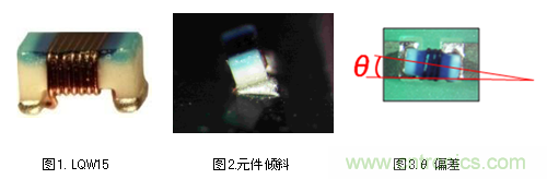 封裝不良的事例包括,在元件傾斜的狀態(tài)下進(jìn)行封裝(圖2),或焊盤上θ偏離(*1)的狀態(tài)下進(jìn)行封裝(圖3)。這些不良情況發(fā)生的原因是對(duì)元件底面電極表面積提供的焊錫量過(guò)多。