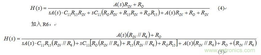 為什么加入R6會使系統(tǒng)的極點由3個變?yōu)?個呢,對此不解,因此將增益A用A(s)代替,將系統(tǒng)函數(shù)寫為:不加入R6: