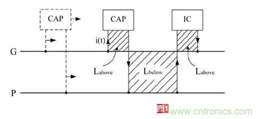 在這里引入兩個概念:Labove 、Lbelow  (電容和IC下面的電流回路大小不一定一樣,但在這里分析的時候,假定大小等同)