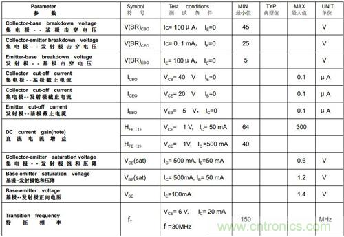 對于9013、9012而言,飽和時Vce小于0.6V,Vbe小于1.2V。下面是9013的特性表: