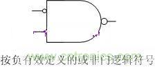 上述圖中畫的邏輯器件符號均是正邏輯下的輸入、輸出關系,即對“1”(高電平)有效而言。而單片機中的多數(shù)控制信號是按照負有效(低電平有效)定義的。例如片選信號CS(Chip Select),指該信號為“0”時具有字符標明的意義,即該信號為“0”表示該芯片被選中。因此,“或非”門的邏輯符號也可以畫成下圖。