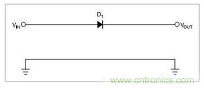 圖1一只串聯二極管保護系統不受反向極性影響,二極管有0.7V的壓降。