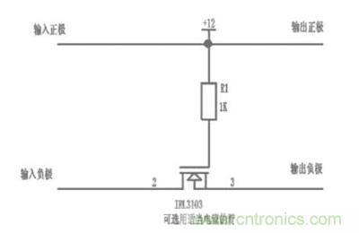 圖4 使用N型MOS管的輸入防反接電路原理圖