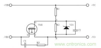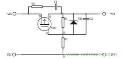 VZ1為穩壓管防止柵源電壓過高擊穿mos管。NMOS管的導通電阻比PMOS的小,最好選NMOS。