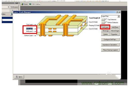打開層疊管理。Design-Layer Stack Manager,進入層疊管理界面。