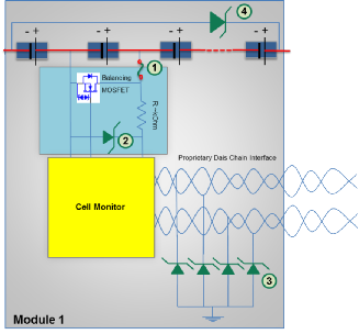 ·更多的控制器模塊的增加以及對簡化車輛中的通信網絡(也可以減少電纜的數量,從而降低總重量)的希望推動了對更大帶寬的需求。無論選擇哪種通信方案,雙通道和四通道低電容 ESD 陣列都可以用來提供所需的保護。