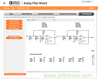 雖然模擬濾波器向導工具按所需特性選擇了最合適的器件,但是找到并使用和建議完全一致的器件可能很難或不切實際。因此,您可以通過元件容差功能靈活選擇電阻和電容容差(圖7)。同時,您還可以查看調整容差對濾波器性能的影響。