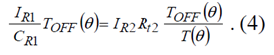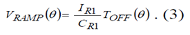 在功率開關管關斷期間,CR1電容的充電電流是IR1恒流,CR1電容上的電壓VRAMP (θ)線性升高: