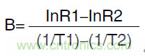 它被定義為兩個溫度下零功率電阻值的自然對數(shù)之差與這個溫度倒數(shù)之差的比值。