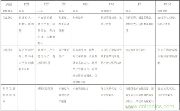 常用的材質(zhì)主要有PA6、PA66、ABS、PBT、pp等,筆者總結(jié)了它們的具體性能差異,見表2。設(shè)計(jì)插件時(shí)可根據(jù)不同的需求選擇不同的材質(zhì),還可根據(jù)實(shí)際情況在塑料中添加阻燃或增強(qiáng)材料,以達(dá)到增強(qiáng)或阻燃的目的,如添加玻璃纖維增強(qiáng)等。