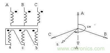 2. D聯結:三角形接線對電壓低、電流大的變壓器低壓繞組而言最經濟。因為三角形接線必須做成等絕緣,不能做成分級絕緣,對于低壓繞組而言,因為電壓較低,這一點不會有什么影響。三角形接線各相繞組中的電流僅為引出線電流的1/√3。三角形接法在繞組里可以流通零序電流和三次諧波電流,產生平抑零序磁通和三次諧波的反磁通,使變壓器的感應電動勢避免發生畸變。