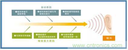 圖4:導(dǎo)致產(chǎn)生功率電感器嘯叫的振動(dòng)原因以及擴(kuò)大原因