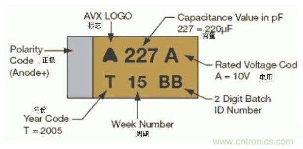 但是如果是貼片的鉭電容或電解電容,會在表面有字母或數值標識。