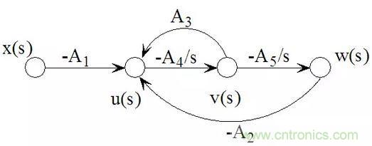 圖1:典型的二階系統(tǒng)的信號(hào)流圖