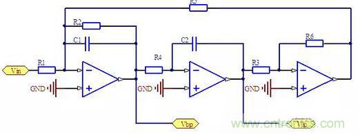原始信號(hào)減去帶通信號(hào)就稱為帶阻信號(hào)了,因此再增加一個(gè)運(yùn)放就可以實(shí)現(xiàn)帶阻型濾波器。