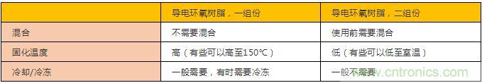 兩種導電環氧樹脂對比如下表: