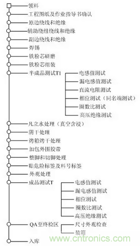 高頻變壓器的制作大致包括以下十個過程,對每個過程的流程、工藝及注意事項作詳細的分析。