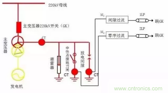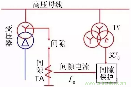 變壓器中性點間隙保護原理如下圖所示。