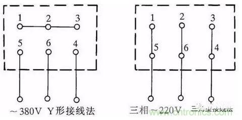 圖2:三相吹風(fēng)機六個引出端子接線方法