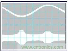 圖1:示波器上顯示的由于60Hz充電電流引起的共模扼流圈的降級