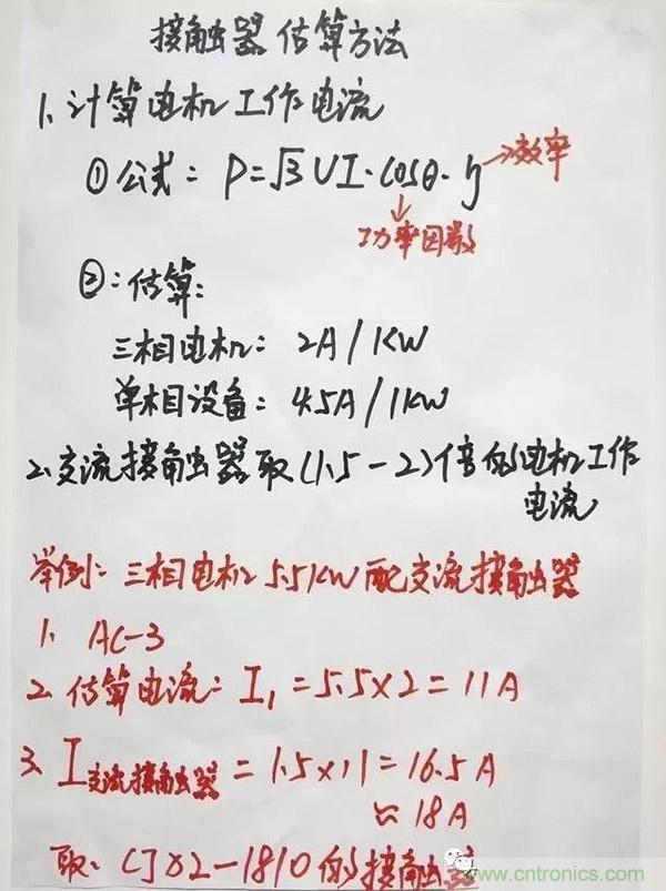 一,首先我們需要根據電動機的功率來計算工作電流。在這里提供兩個方法如圖所示: