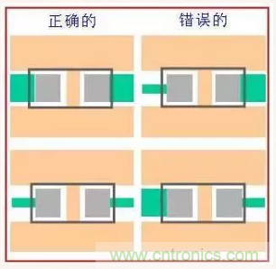 7元件焊盤兩邊引線寬度要一致