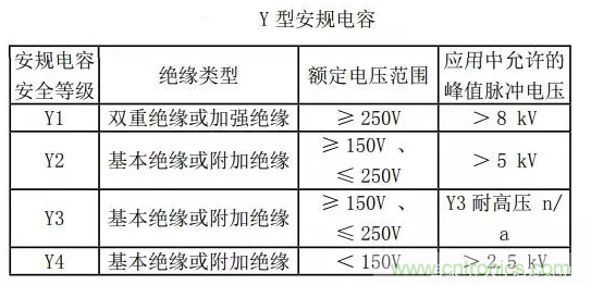 Y型安規電容安全等級:Y1≥250V,允許峰值脈沖電壓>8KV;150V≤Y2≤300V,允許峰值脈沖電壓>5KV,Y4<150V,允許峰值脈沖電壓>2.5KV